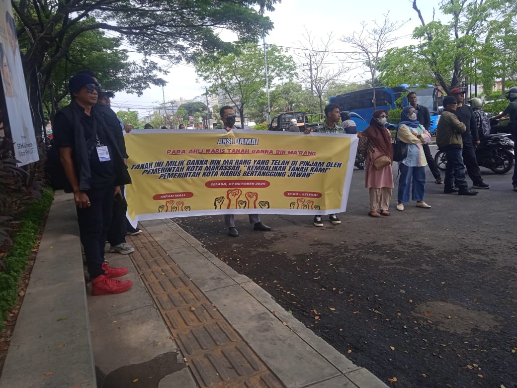 Makassar – infoglobalnews.id | Selasa, 7-10-2025. Puluhan ahli waris berdemo damai di depan mall Nipah. Para ahli waris Ganna Bin Ma`rang menuntut apa yang menjadi hak mereka.
